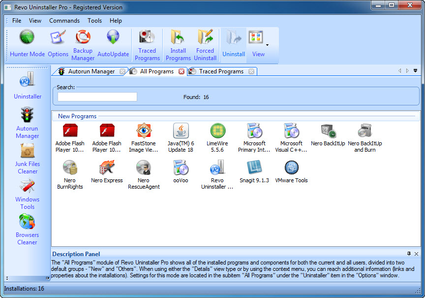Revo Uninstaller adalah utility yang melakukan tidak hanya sekedar uninstal program saja tetapi juga menghapus secara mendalam sampai dengan seluruh sistem yang terinstal di dalam sistem operasi Windows anda.